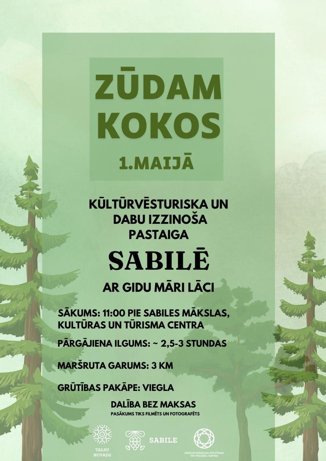 Pastaigas maršruts vedīs cauri gleznainajai Sabilei, sniedzot iespēju iepazīt gan pilsētas, gan apkārtnes dabas daudzveidību. Īpaša uzmanība tiks pievērsta kokiem un to stāstiem.