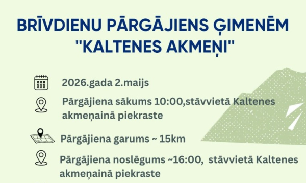 2. maijā dodies 15km garā brīvdienu pārgājienā “Kaltenes akmeņi”.