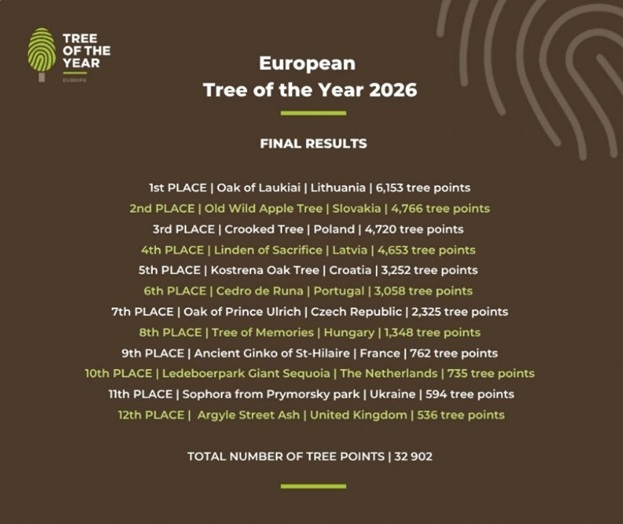 Balsojums par Eiropas Gada koku 2026 notika no 2. līdz 22. februārim, balsojuma rezultātiem ne reizi netopot publiskiem.