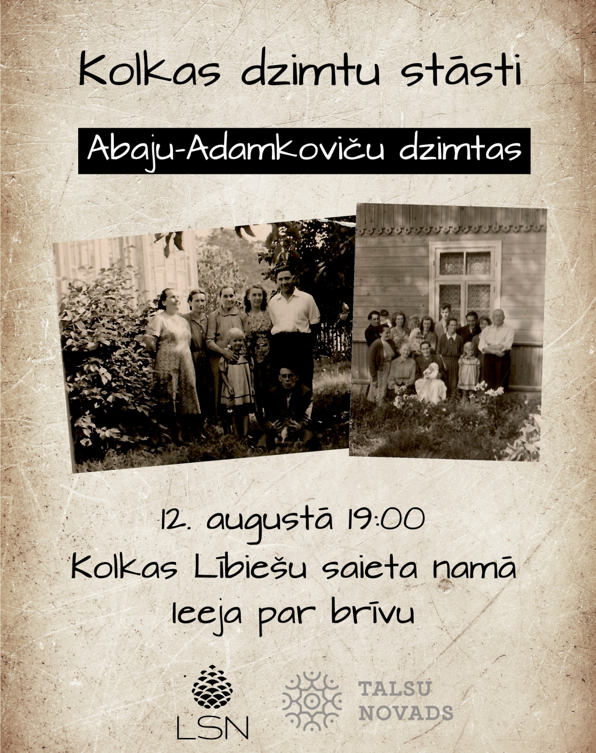 12. augustā plkst. 19.00 Kolkas dzimtu stāsti Kolkas Lībiešu saieta namā.