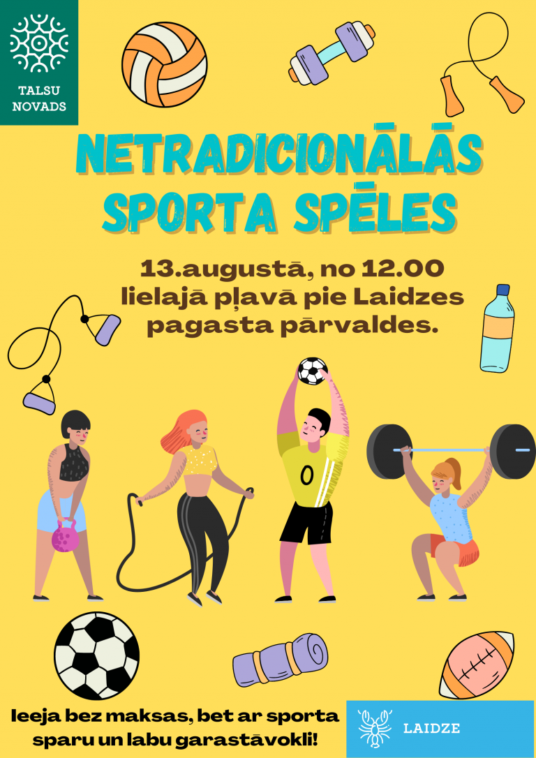 13. augustā plkst. 12.00 netradicionālās sporta spēles lielajā pļavā pie Laidzes pagasta pārvaldes.