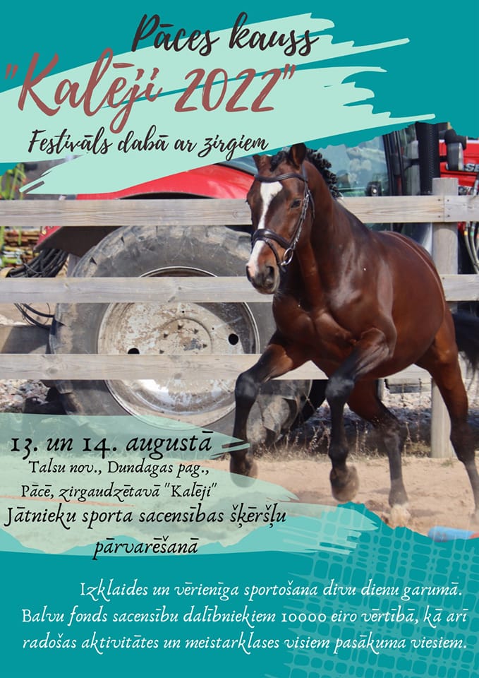 13. un 14. augustā zirgaudzētavā “Kalēji” Pāces kauss “Kalēji 2022” – festivāls dabā ar zirgiem, jātnieku sporta sacensības šķēršļu pārvarēšanā.